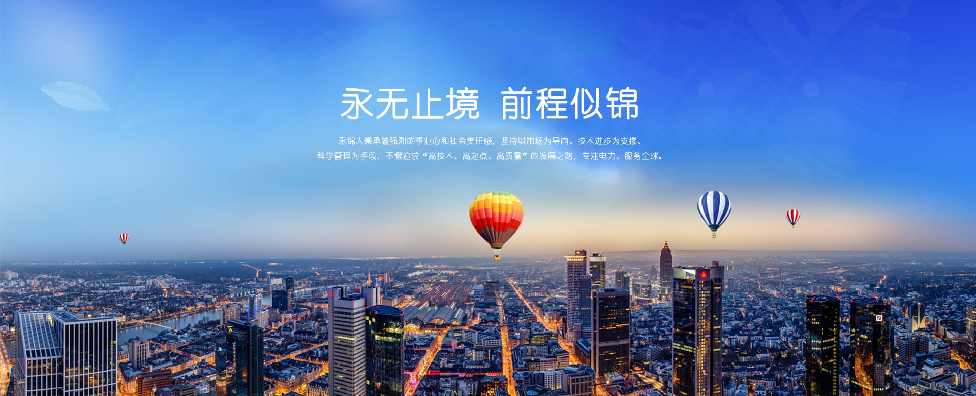 “永無止境、前程似錦”——永錦人秉承著強烈的事業心和社會責任感,堅持以市場為導向、技術進步為支撐、科學管理為手段,不懈追求“高技術、高起點、高質量”的發展之路,專注電力、服務全球。